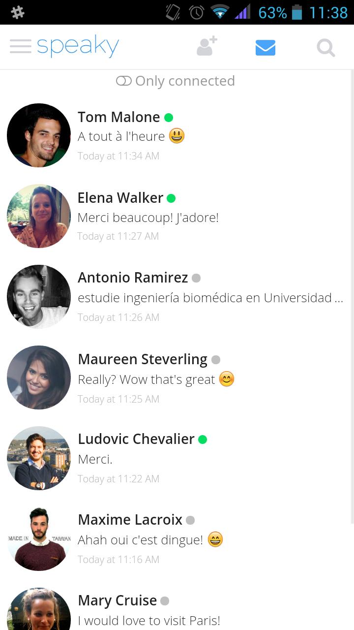 Speaky y nuestra comunidad le ofrecen la forma más eficiente de aprender un nuevo idioma. Practique a diario charlando e interactuando con hablantes nativos.
