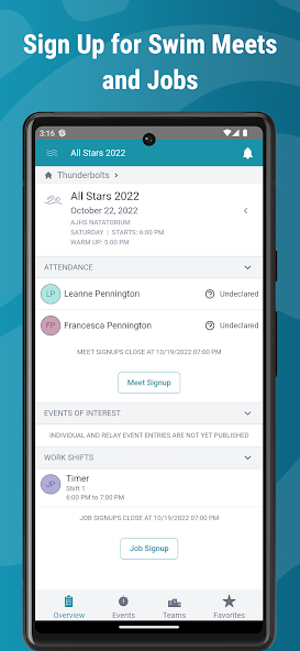 SwimTopia Mobile ayuda a mantener a los miembros del equipo y a conocer a los espectadores mejor informados. Los miembros de los equipos que usan SwimTopia pueden recibir notificaciones de su equipo y ver la información de su equipo y nadadores de forma gratuita, durante toda la temporada. El evento en vivo/indicador de calor ** transmite lo que está sucediendo en la piscina durante las reuniones en tiempo real, ¡así que nadie necesita perder un nadar nuevamente! Cuando las reuniones se ejecutan en Meet Maestro, SwimTopia Mobile proporciona toda la información que los espectadores necesitan para mantenerse al día en los días de reunión cuando tienen una suscripción profesional.