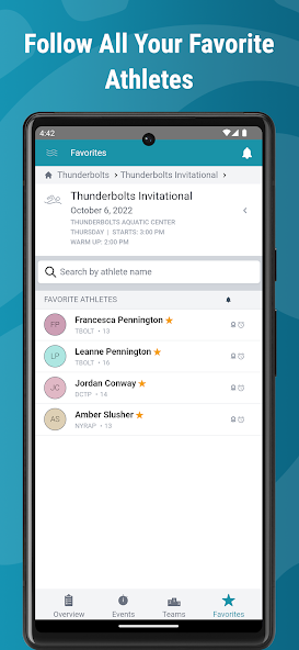 * Las próximas alertas de recordatorio de natación para nadadores favoritos*