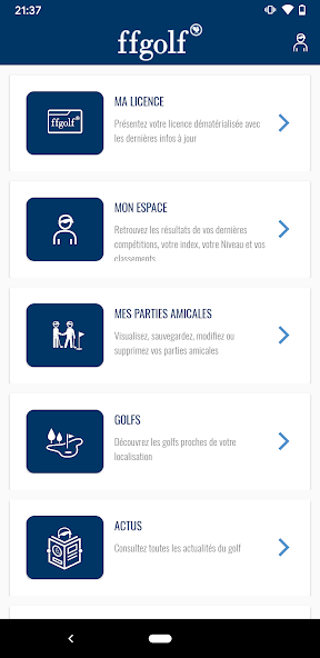 Extension of the licensed area on www.ffgolf.org, this application gives you access to all the information that is useful to you.