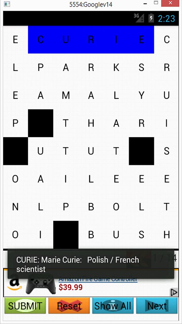 This is a fun and exciting app in which the the last name of famous people have been arranged randomly and are "hidden" in a grid going in many directions, and your objective is find these people. When you discover a person successfully, the app tells you more about the person. It also keeps track of your score in terms how many people you were able to discover in the puzzle