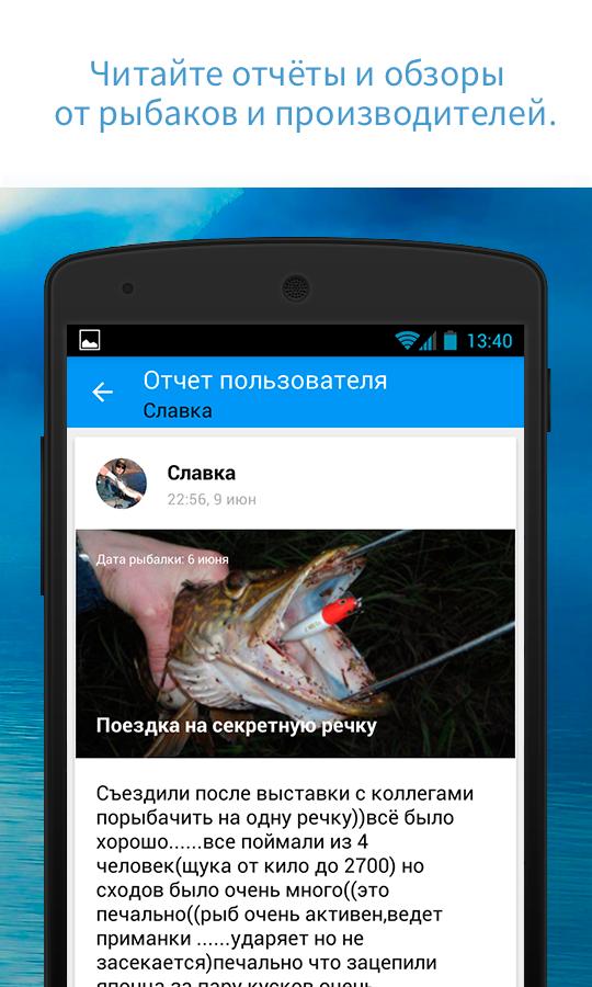 Using Fishingspace mobile application, communication with other fishermen has become as simple and comfortable as possible! Be in touch at home and fishing, promptly find out the situation with the cool on the pond you are interested in, read the news of various fishing forums right from your tablet or smartphone!