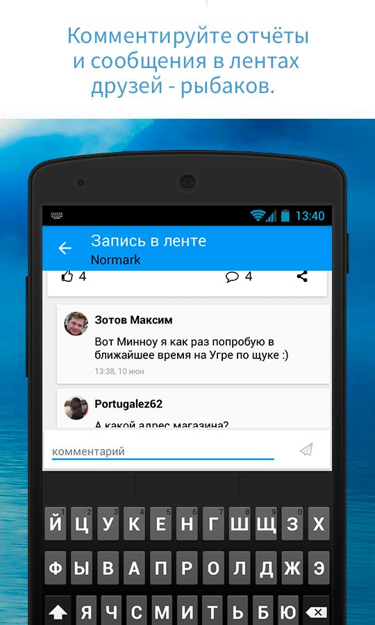 Communicate and exchange experience with friends and enthusiasts at any time and anywhere. Use a map of the depths of water bodies and mark the points around you!