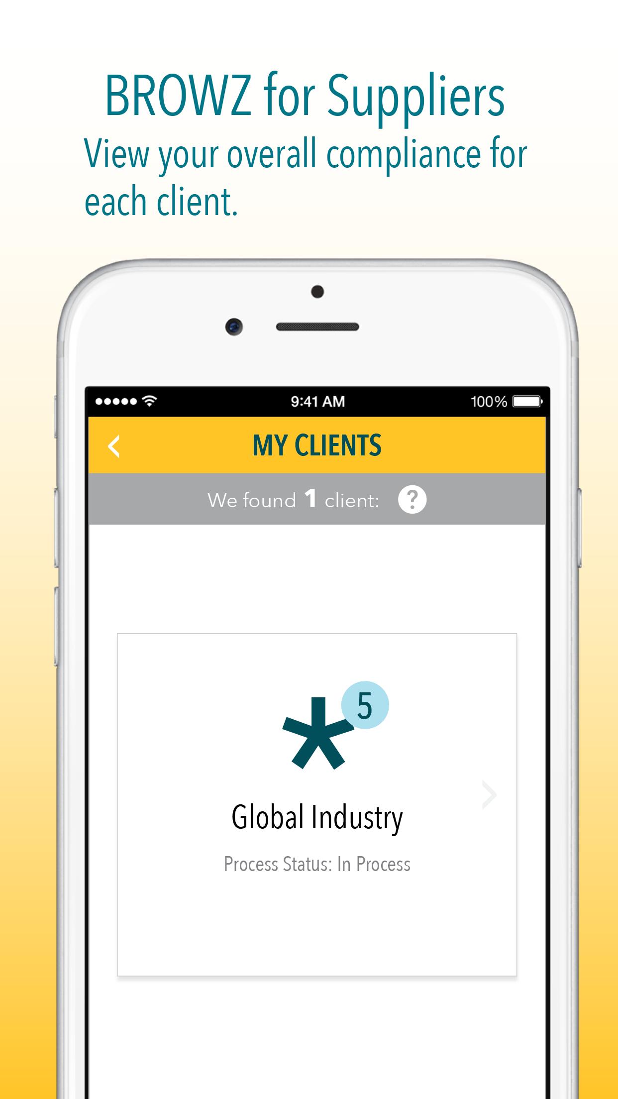 BROWZ for Suppliers donne accès à vos données de conformité en déplacement.
