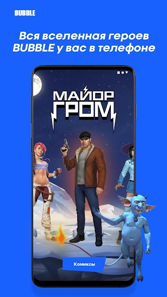 Nos bandes dessinées ne sont pas des mangas ni des anime. Ils sont russes avec un style russe distinct. Téléchargez l'application Bubble et rejoignez l'univers de l'éditeur de bandes dessinées de Russie!