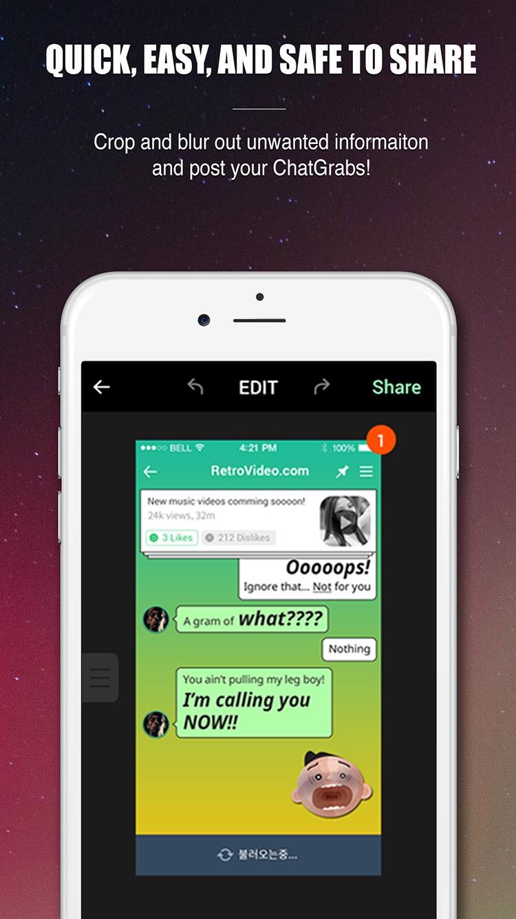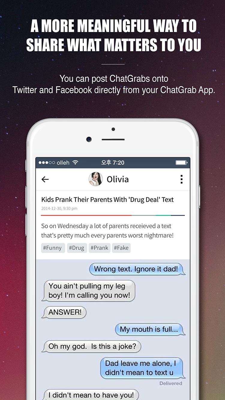 Publier et partager tous les types de captures d'écran des messages texte. Nous appelons ces ChatGrab (captures d'écran de chats)