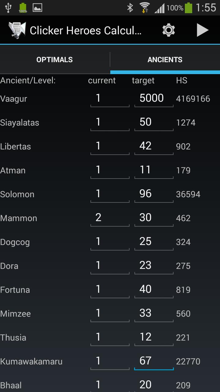 Calculatrice pour une quantité optimale d'anciennes pour les héros du cliqueur de jeu