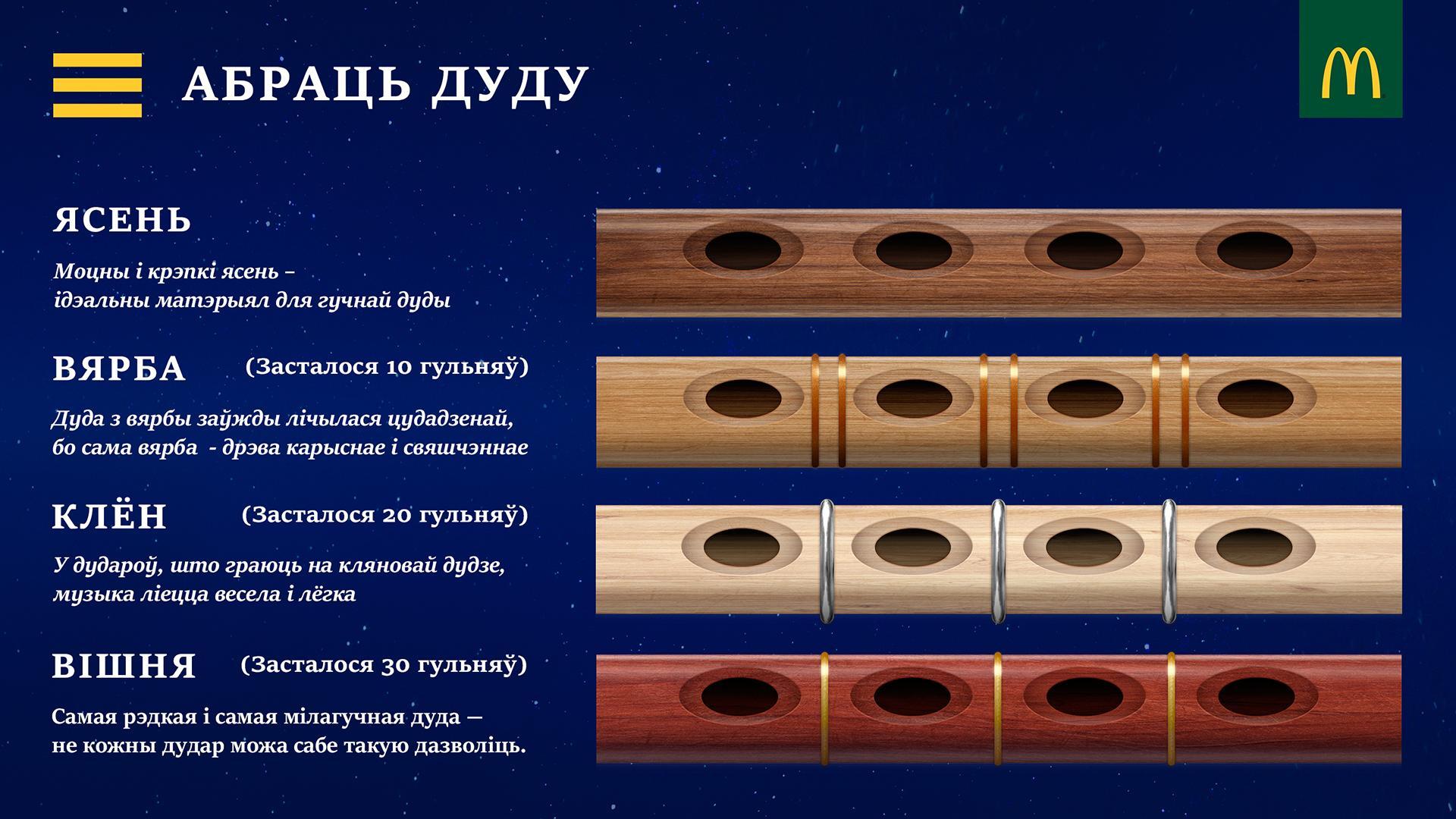 DUDA est une application développée spécialement pour les semaines biélorusses dans les restaurants de restauration rapide de McDonald's. Peu savent que le DUDA biélorusse n'est pas seulement l'un des instruments de musique nationaux, mais aussi notre sœur de la cornemuse écossaise! De plus, tous les Biélorusses n'ont pas entendu de vrai DUDA , dont le son diffère considérablement du son des instruments modernes.