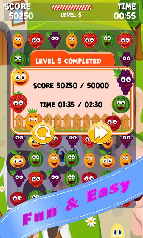 Farm Pop Crush est un jeu MATCH 3 qui est très simple et drôle, idéal pour vos enfants, car le jeu aide à améliorer les compétences cognitives, à stimuler la mémoire, à la pensée logique, à développer des compétences sociales tout en s'amusant.