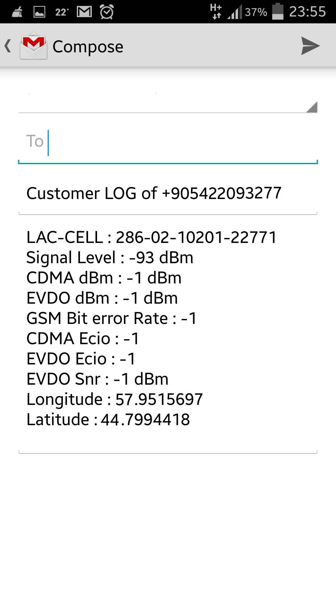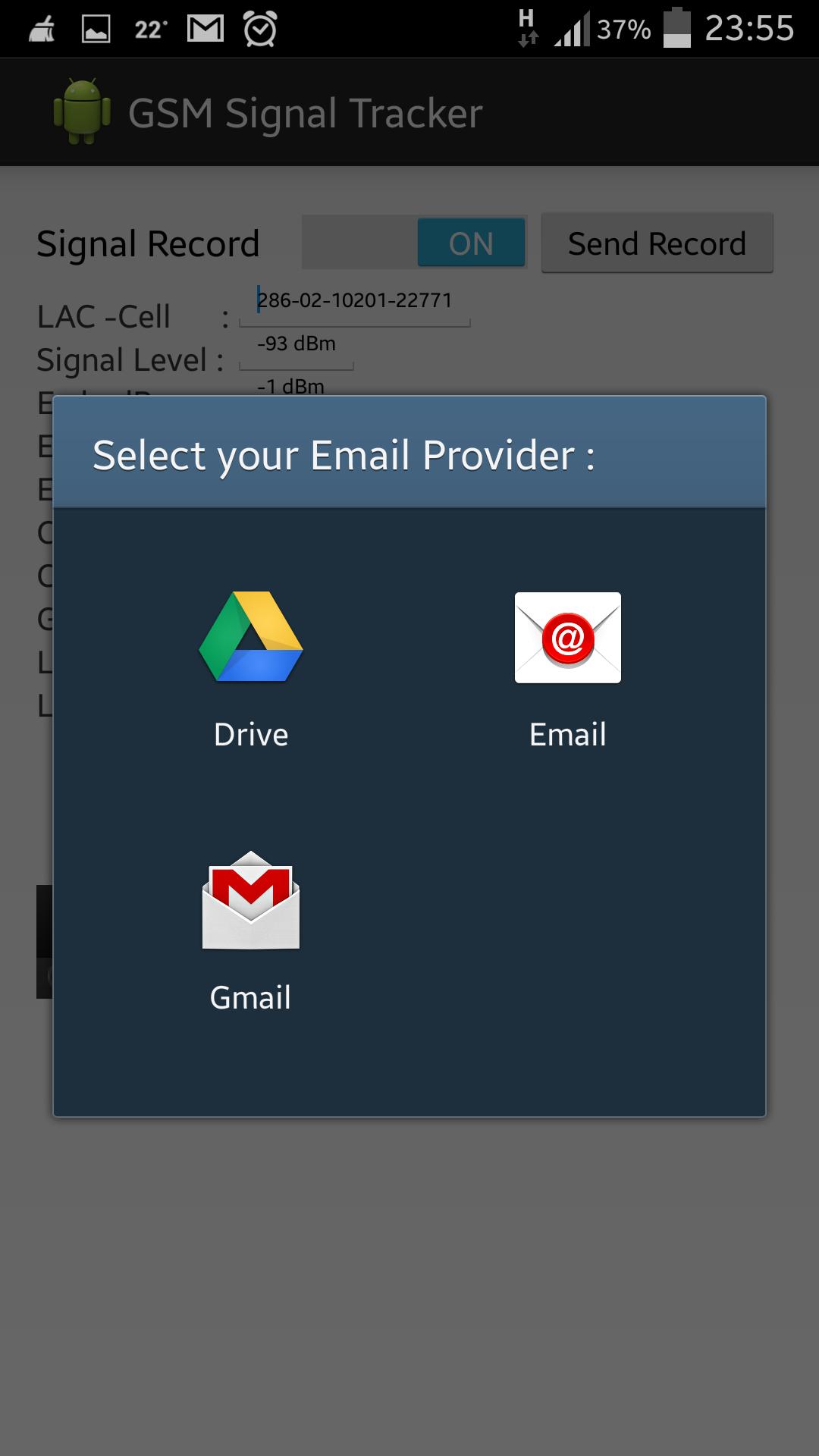 GSM Signal Tracker est un outil qui surveille l'état du réseau cellulaire en collectant des données sur les informations de la station de base comme GSM_CELL_ID, la résistance du signal, les coordonnées, le taux d'erreur de bit, etc. et affiche sur la carte Google Earth. Lors des informations d'envoi, le fichier de la carte Google a automatiquement ajouté au courrier. L'outil prend en charge tous les g. il a des détails d'appel comme