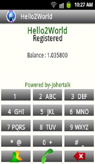 Hello2World Le répertoire est un numéroteur Android très facile et convivial pour l'appel VOIP mobile. Le numéroteur peut fonctionner correctement dans n'importe quelle version du téléphone Android. Cette petite et facile à installer l'application vous aide à vous connecter rapidement à votre fournisseur de services. Hello2World Le numéroteur a nécessité une bande passante minimale pour la connexion et l'origine des appels VoIP. L'utilisateur peut facturer leurs opérateurs de télécommunications pour les services de données. Il se déroule bien dans n'importe quel réseau privé. Si vous êtes un fournisseur de services VoIP mobile, veuillez collecter votre broche de démonstration pour tester ce superbe numéroteur chez nous.