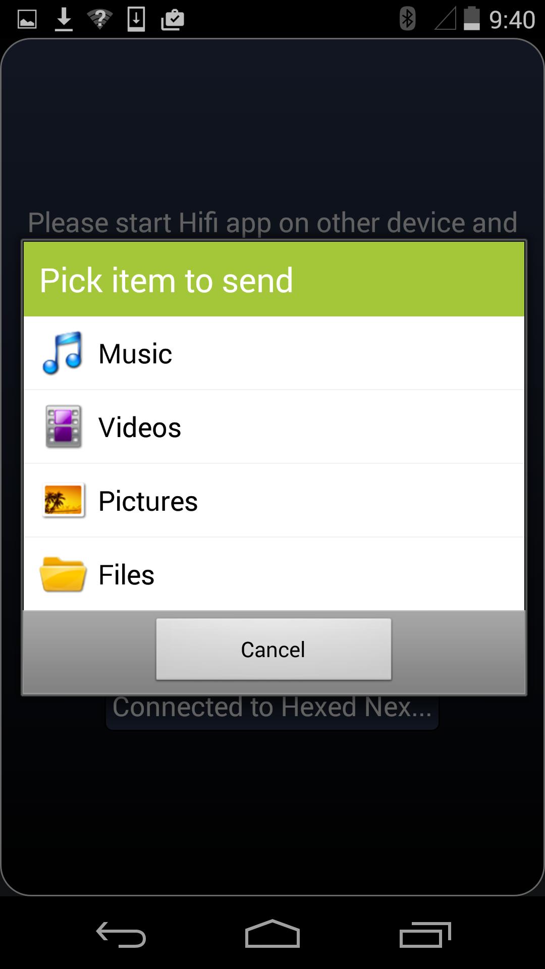 Hifi 1.0 est le moyen rapide de faire passer et recevoir des fichiers volumineux entre les appareils Android à l'aide de WiFi Direct.