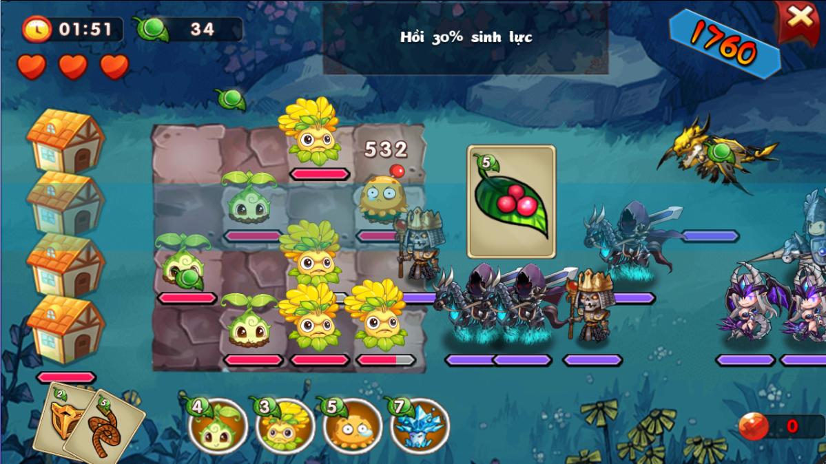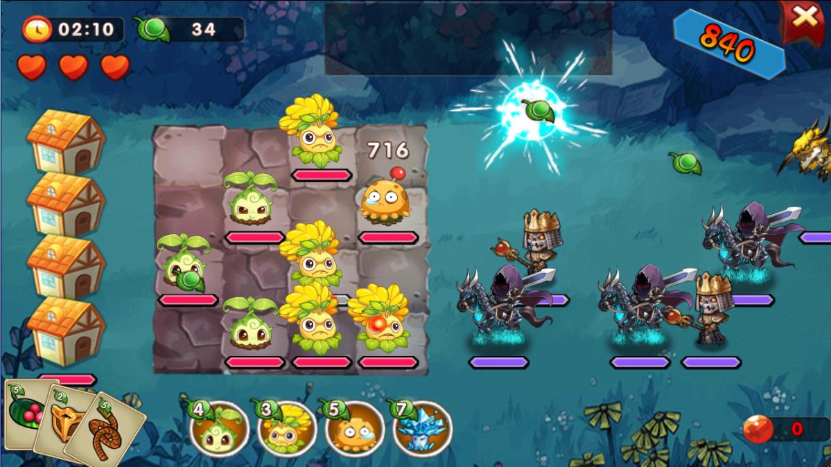 -Les gouttes de fruits sur la position sur la carte pour être défensive avant l'invasion des monstres.