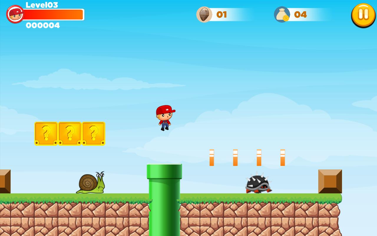 Courez, sautez et tirez avec Jacob sur votre chemin, collectez des pièces et méfiez-vous des ennemis!