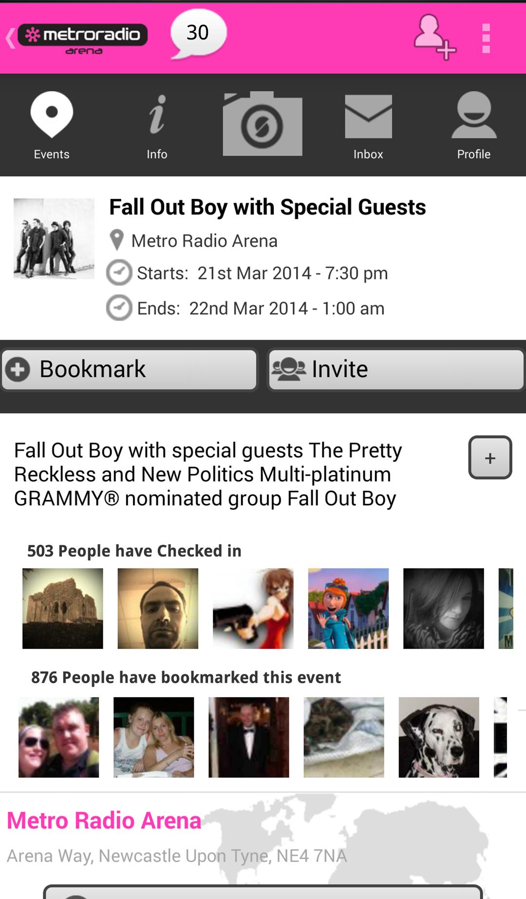 Consultez les dernières annonces d'événements, voyez ce qui se trouve et qui va, invitez facilement vos amis directement à partir de l'application. Restez à jour avec les dernières nouvelles, des annonces spéciales et tout changement de calendrier instantanément et être le premier à entendre parler de nouveaux événements et informations de billetterie lorsqu'ils sont publiés!