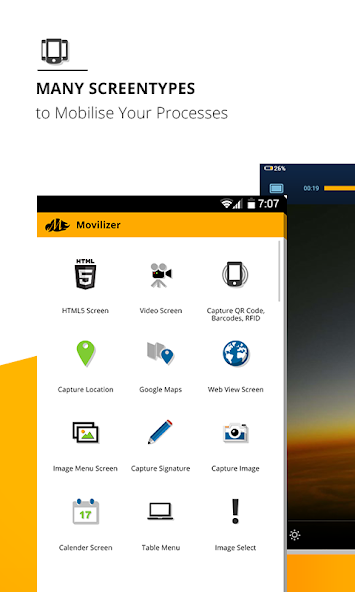 Movilizer est le cloud pour les opérations sur le terrain pour stimuler la rentabilité des entreprises dans les grandes entreprises de fabrication et de services. Le Movilizer Cloud agit comme une plate-forme d'application d'entreprise mobile (MEAP) et interconnecte les employés du terrain et les processus critiques de mission à travers les limites de l'entreprise.