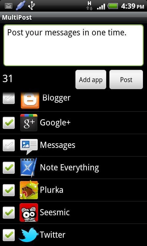 Cette application peut lancer des applications pour chaque réseau social dans un lot, afin que vous puissiez simplement saisir le message une fois, puis appuyez simplement sur "Envoyer" ou "publier" sur vos applications sociales préférées.