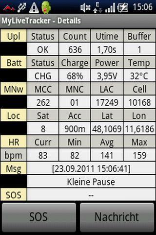 • Les informations suivantes peuvent être transmises: position GPS (précision incluse, vitesse et altitude), statut GPS (nombre de satellites), informations sur les cellules du réseau mobile (MCC, MNC, MNN, LAC, cellule-ID), statut de l'expéditeur (Réseau, force du signal, batterie), Heartrat (sur les ceintures compatibles avec ANT +, CEL