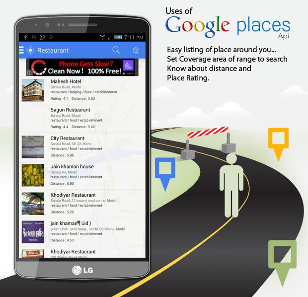 Place peut rechercher par classifié à l'aide de types et de mots clés, Google permet à l'utilisateur de répertorier la place de chaque catégorie. Nous pouvons également une liste détaillée de la recherche