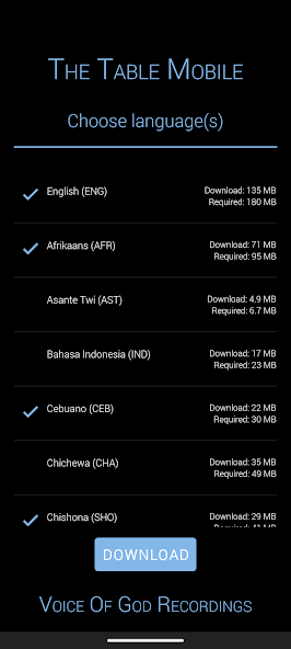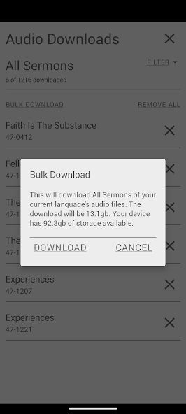 Téléchargement en vrac - Avec un bon Internet, vous pouvez désormais télécharger des années de sermons à la fois via la fonction de téléchargement en vrac. Cela vous permet de créer très simplement une collection audio complète sur votre appareil. Le tableau fonctionne également avec nos cartes OPU Micro SD afin que vous puissiez acquérir la bibliothèque audio complète même si vous n'avez pas Internet rapide. La carte Micro SD comprend également tous les audio traduits.