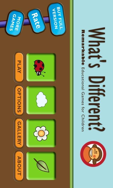 What's Different is a fun educational game for young children (ages 3 and up). Join the adorable ladybug guide on a learning adventure that will keep your little ones thinking and guessing.