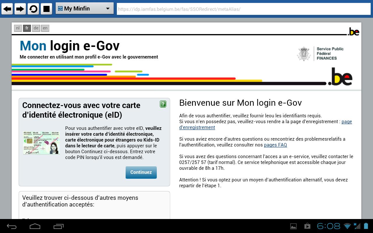 Freedelity Secure Browser Pro allows you to connect to and browse specific secured belgian website (such as Tax-On-Web, Intervat, BizTax, FinProf, TaxWorkBox, eHealth or My Minfin) using your Android™ tablet and your electronic identity card!