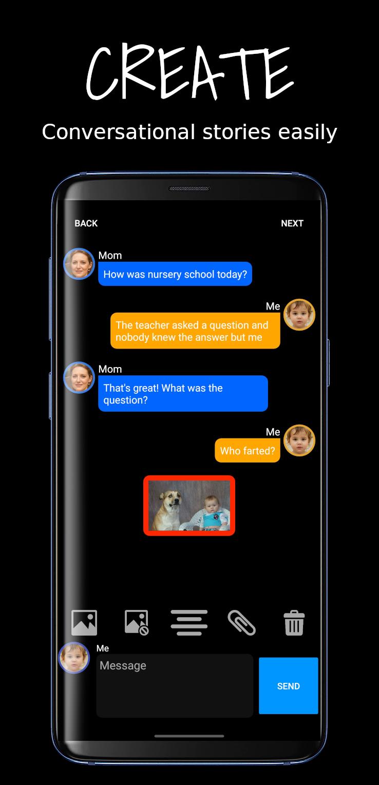 Create chat story or read fiction stories from others with this story creator.