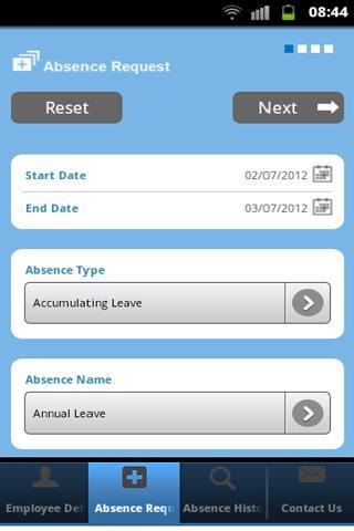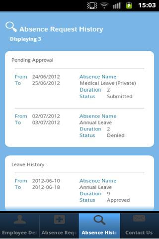 The Approval of leave requests can also be done through this application. Other features include viewing of Leave status and Absence history.