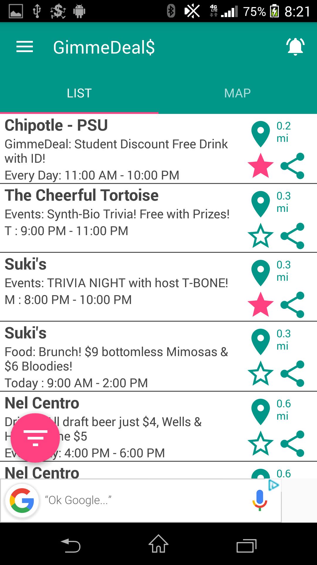 New NearDeals tells you about specials going on now right around you - from 50' to 500'! You practically get pulled into places to save money!