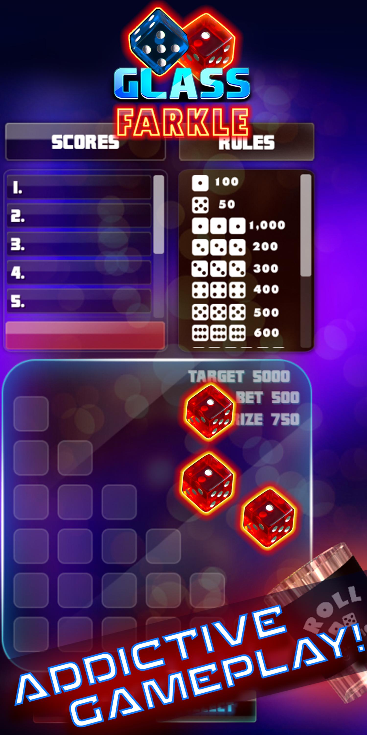 Glass Farkle 3D is quick to learn & easy to play. Best Dice game.
