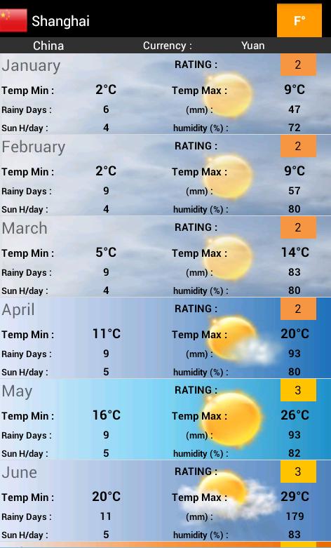 Glob Weather allow you to know month by month the climatic trends of every big cities all over the world!!