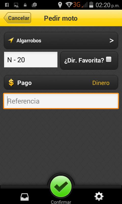 1.- Light your GPS to mark your current location and write your collection address to request a motorcycle taxi.