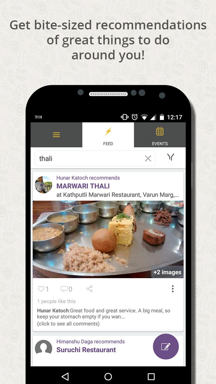 - See what’s happening in the Events section. From Ladies Nights to Art Exhibitions, we are keeping track of the most buzzing events nearby! (Events section currently available in Delhi/NCR. We'll be buzzing near you soon!)