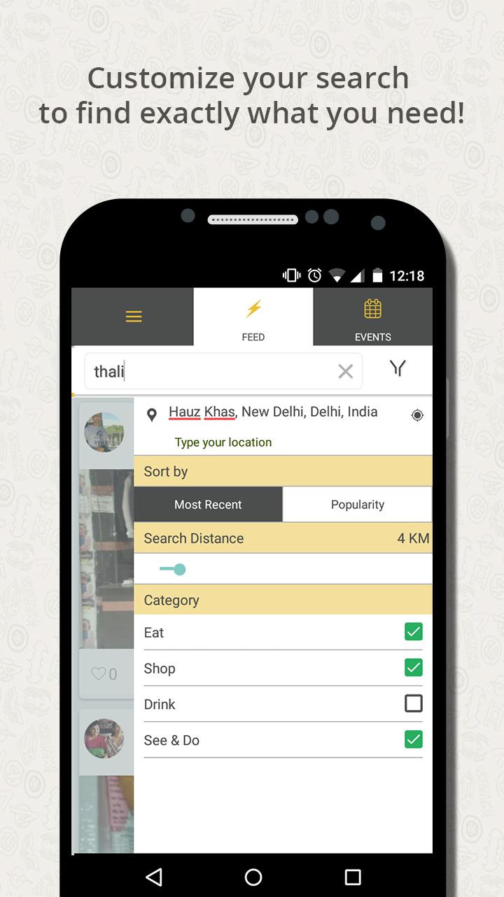 - With the help of our customized search feature, find exactly what you are looking for. From a quirky outfit that fits your pocket to the best Chole Bhature in your area, zeroed to 1 kilometer!