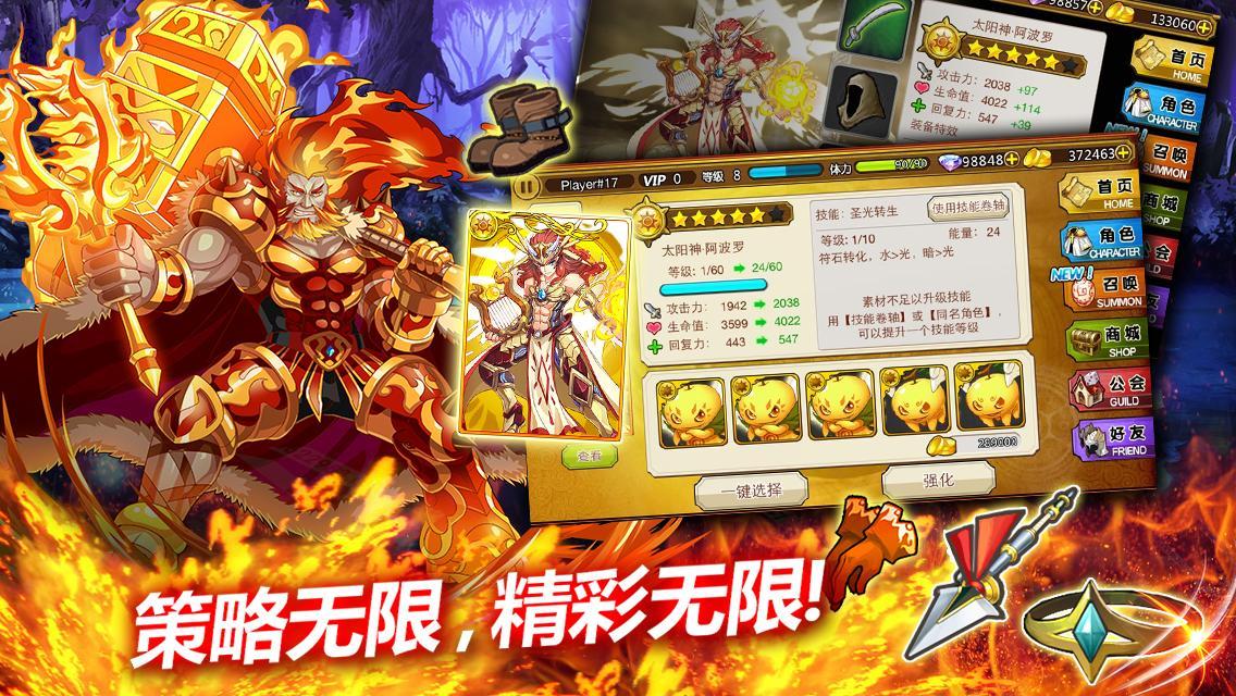 We've prepared lots of gifts for the player, once you downloaded this game, you'll get a lot of packs and by using these packs you can collect your favorite gods. Besides you can also join/create a guild, play this game with your friends.