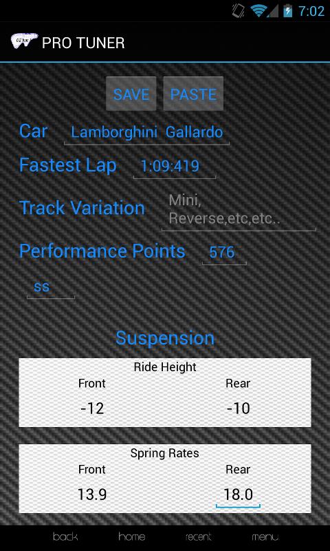 * Save Setups for your cars based on their PP bracket