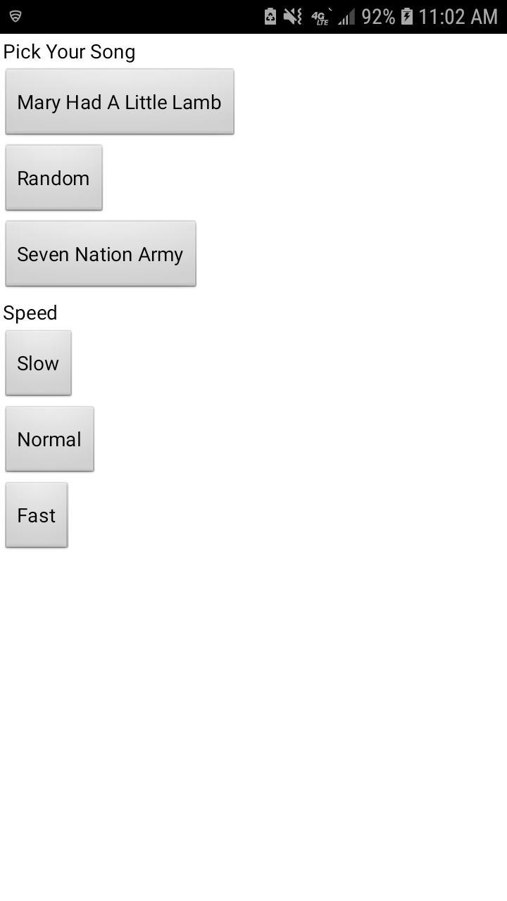 In this game you can tap the falling notes to play your favorite songs. So far we have Seven Nation Army and Mary Had a Little Lamb and a crazy random mode.