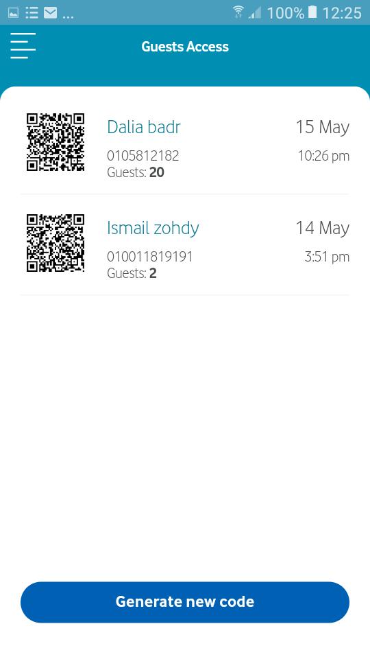 - Guests Access: Generate Access codes to your visitors directly through the application.