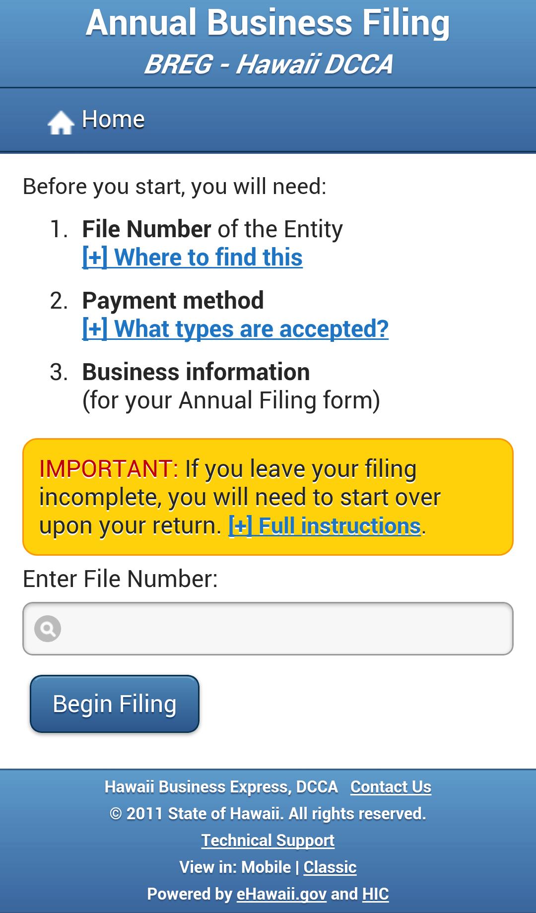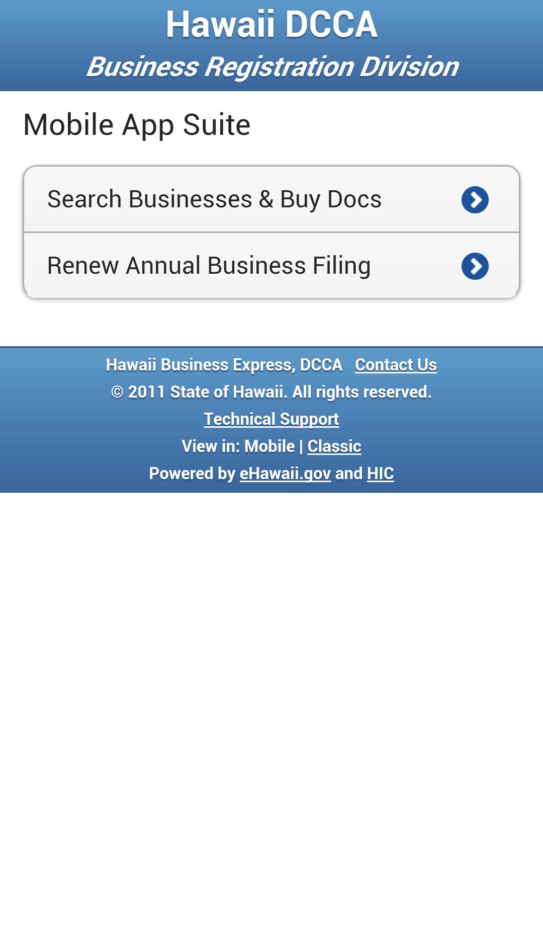 The State of Hawaii Dep. of Commerce and Consumer Affairs Business Registration Division offers this app to: