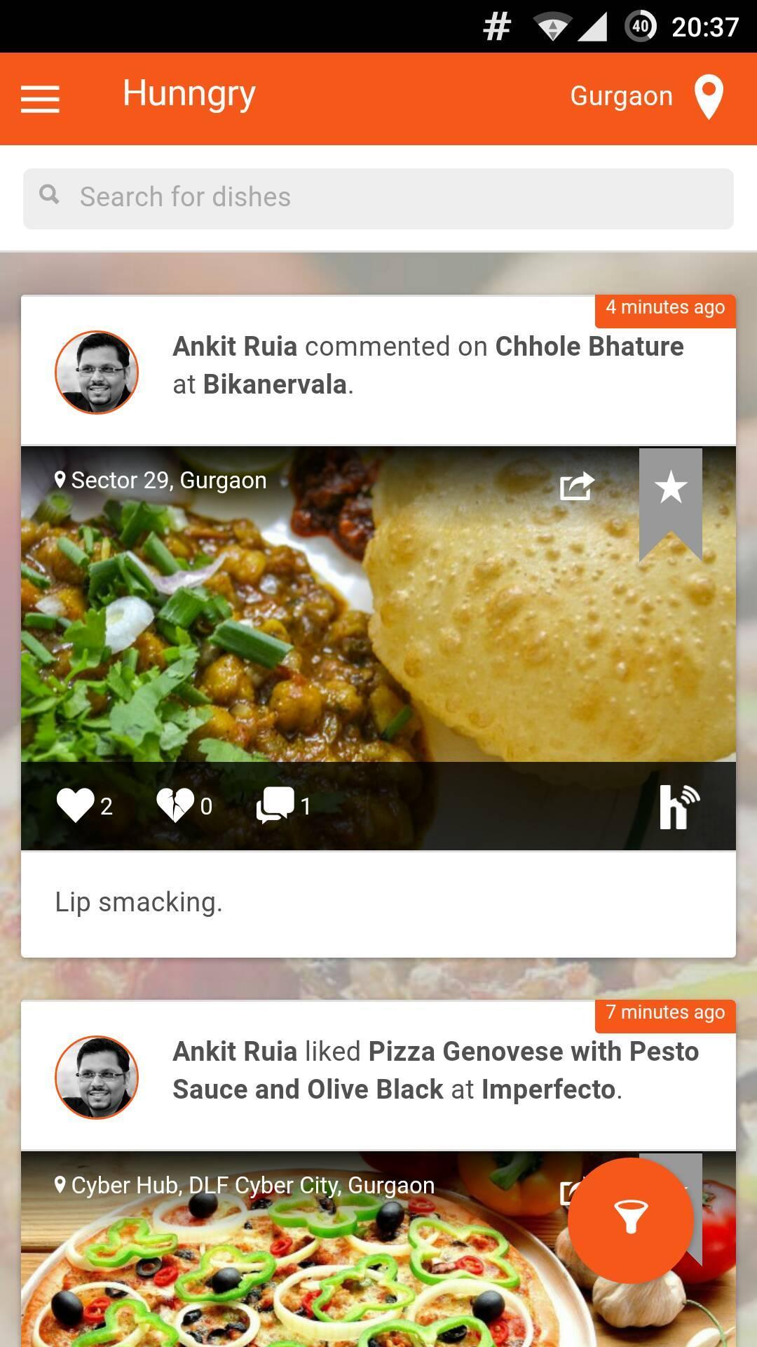 So you don't know if you will get your favourite Bengali dish in Gurgaon or not! You are very much fond of Paneer Tikka but are unaware of their availability in Gurgaon? Or are you a crazy fan of local delights but unsure of the places you should try them at? Don't worry, we at Hunngry, take care to find a solution for all your food related problems. Whether it is about searching your favorite dish or deciding what to eat at a restaurant, we are there for your personalized service every time. At Hunngry, we help you find the perfect places to gorge on your favourite dish, be it a italian or mexican or our own desi punjabi style. We aim towards satisfying not just your hunger pangs, but your taste buds too. You won't have to face disappointment ever again by visiting highly rated and recommended restaurants but poorly prepared dish, our ultimate goal is to explore the hidden, bug under-rated food joints for you which do not compromise when it comes to quality and taste. Come and explore with us, let our tummies be companions, let's help them reach nirvana.