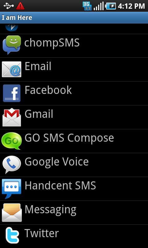 Send an SMS or email with your current location and address with google maps link to android/iphone users.