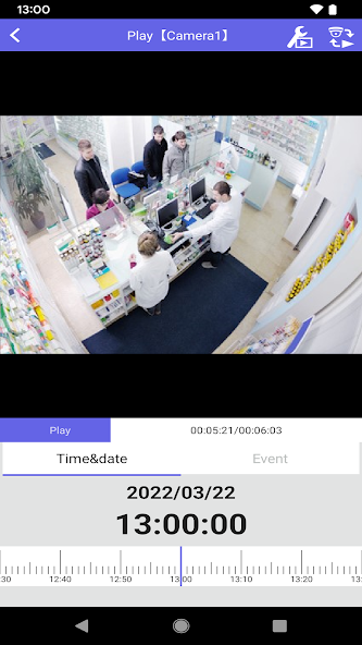 recorded in a recorder (recorder recording) with the device type as camera, recorder, or Remote Monitoring. Search recorded video by date, time or event and play.(The event search is available only at the time of SD recording playback.)
