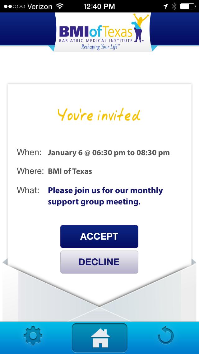 Jika Anda mempertimbangkan operasi penurunan berat badan atau Anda sudah menjadi BMI of Texas , aplikasi ini untuk Anda. Akses grup pendukung kami, melacak penurunan berat badan Anda, mengakses resep, membuat garis waktu foto kesuksesan Anda, mengajukan pertanyaan, isi ulang suplemen Anda, dan banyak lagi yang dapat dilakukan melalui aplikasi kami.