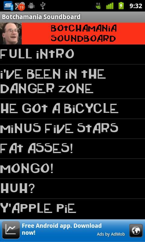 Botchamania Soundboard mencakup lebih dari 50 klip suara dari serial YouTube Botchamania, menampilkan berbagai gerakan gulat profesional, promo, kesalahan ketik dan kesalahan lainnya dari WWE/WWF, WCW, ECW, CZW, dan banyak lagi!