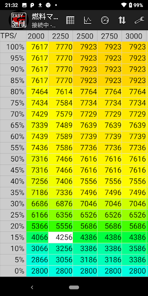 - Tampilkan kecepatan engine saat ini dan posisi throttle secara real time di peta penyesuaian bahan bakar & pengapian.