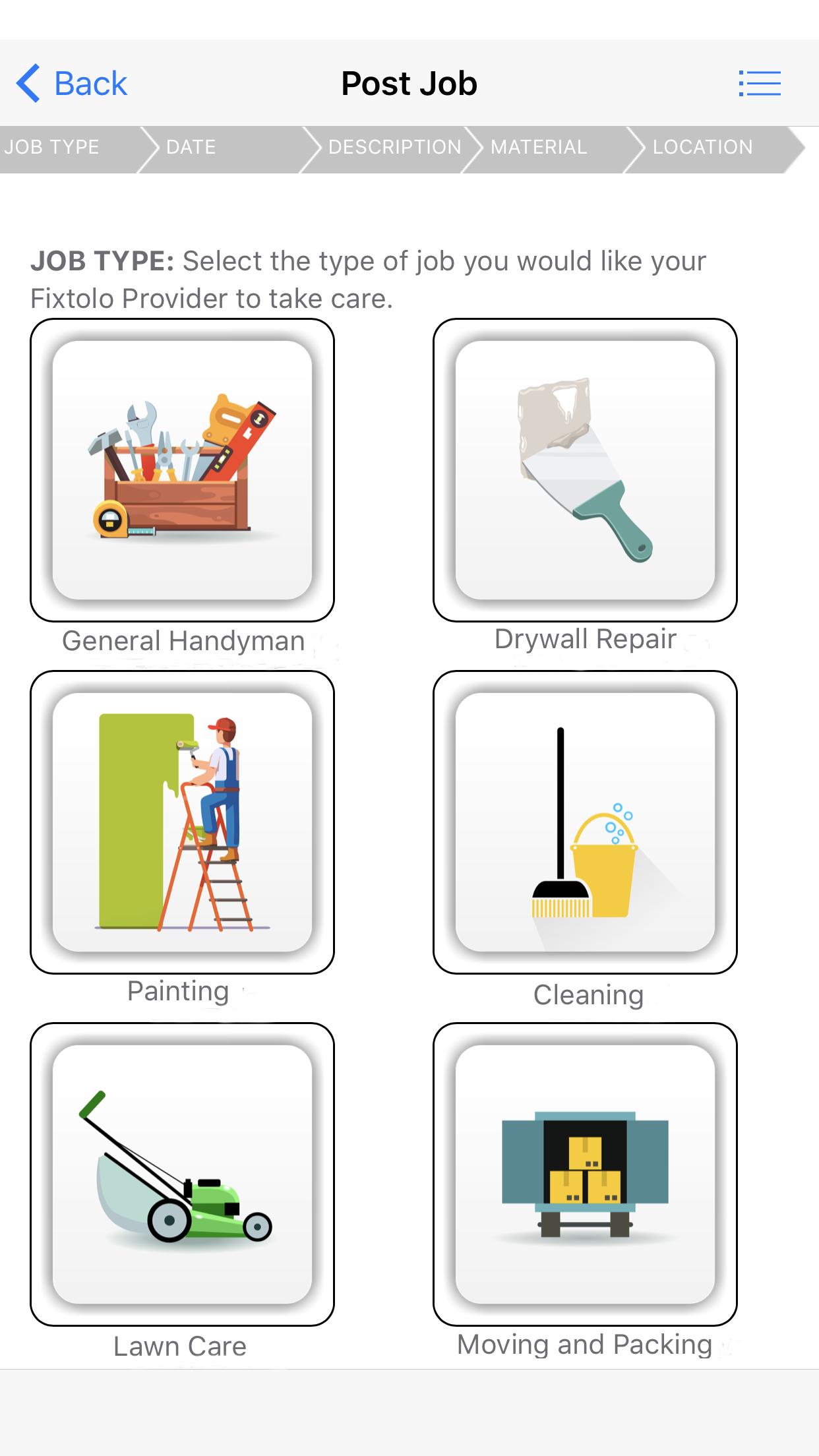 Dengan hanya beberapa ketukan aplikasi seluler FixTolo , Anda akan menjadwalkan penyedia layanan untuk pekerjaan yang Anda butuhkan, pada hari Anda membutuhkannya.