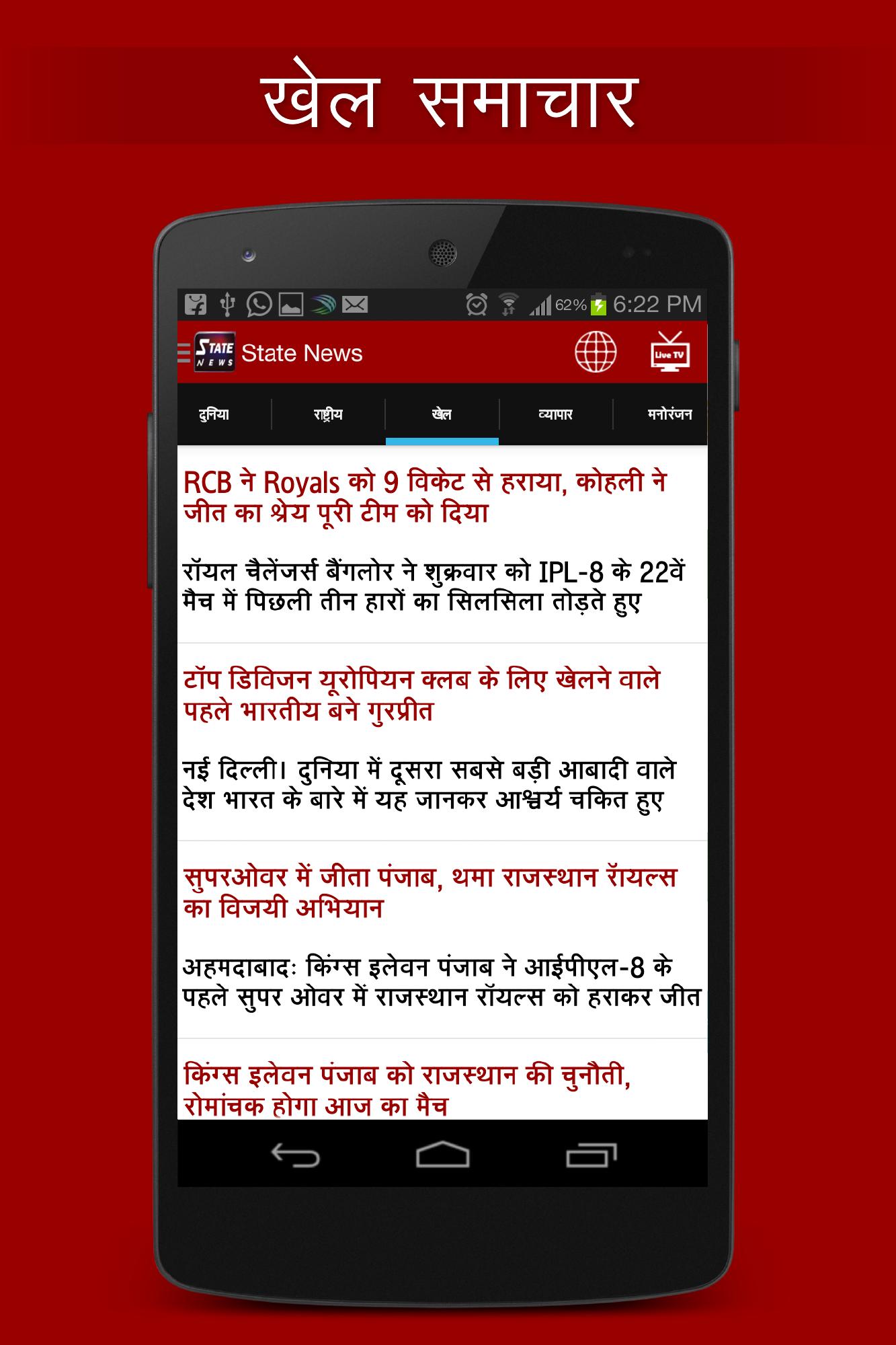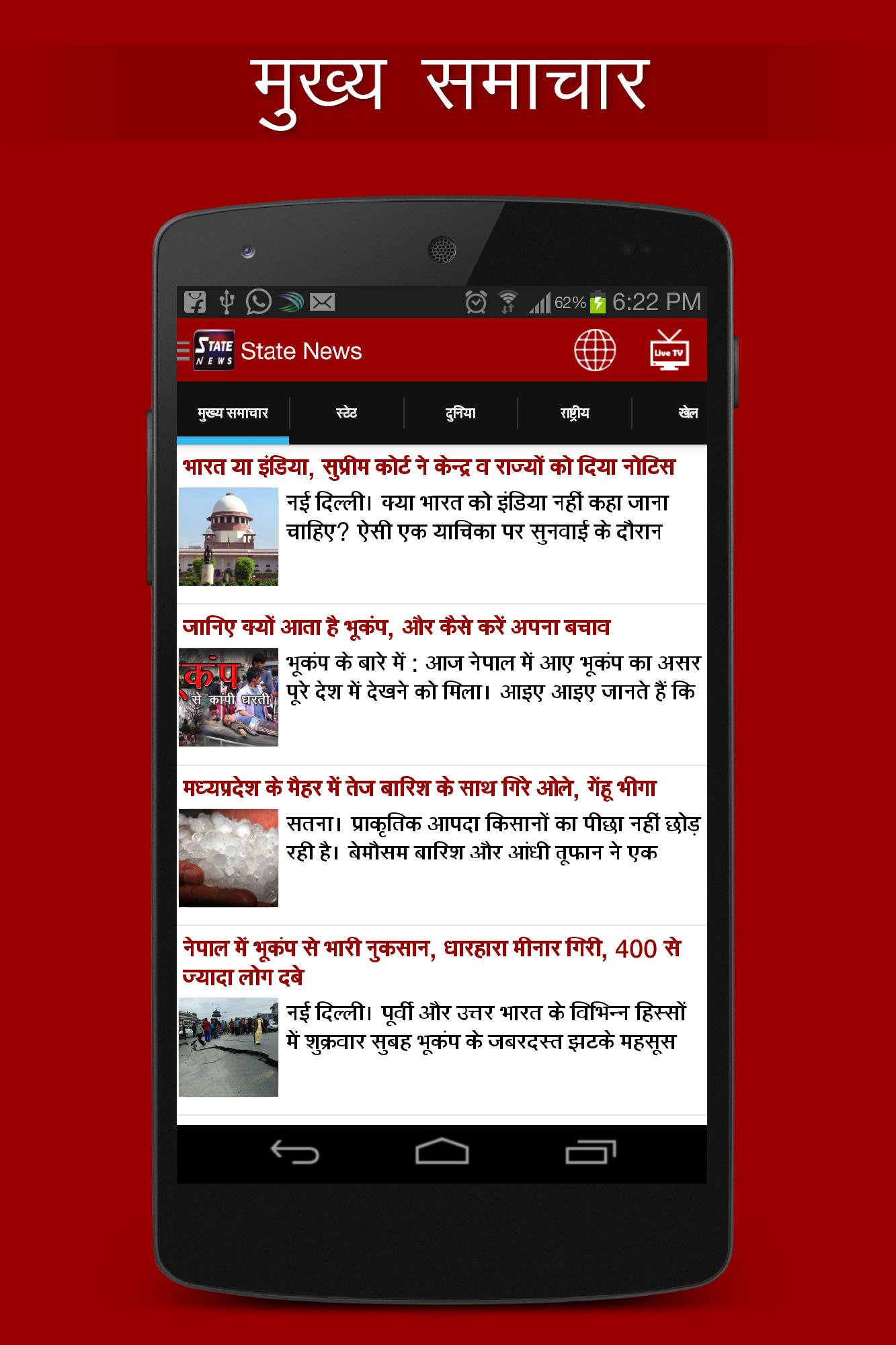 Unduh Aplikasi State News (स्टेट न्यूज एप) dan bawa dunia di ponsel Anda dan akses semua informasi hanya dengan sekelompok jari Anda.