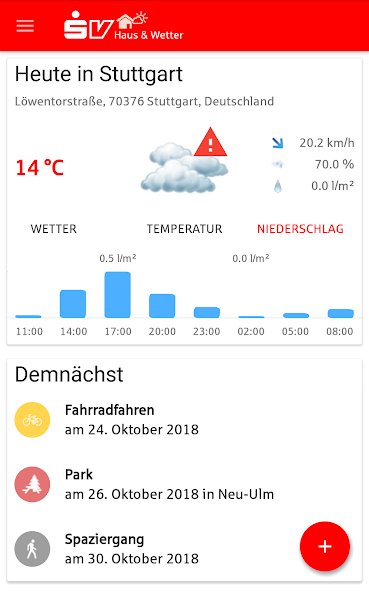 "SV House & Weather" tersedia untuk Anda sebagai layanan gratis SV Sparkassenversicherung. Penggunaan beberapa fitur akan menghasilkan komunikasi data dan biaya internet yang didasarkan pada tingkat penyedia khusus Anda. Syarat dan ketentuan SV Sparkassenversicherung berlaku sesuai dengan Ketentuan Penggunaan dan Instruksi Perlindungan Data untuk aplikasi " SV Haus & Wetter " (http://www.sv.de/wetterapp). Dengan mengunduh aplikasi SV Haus & Wetter, Anda menyetujui validitas kondisi ini.