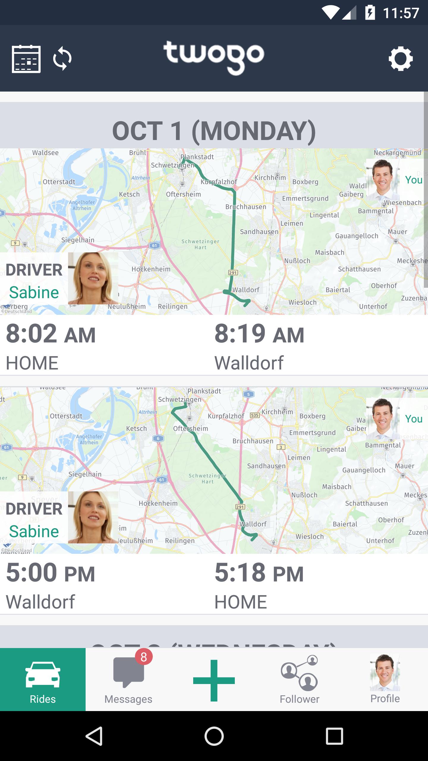 Aplikasi seluler TwoGo oleh SAP untuk Android adalah layanan carpooling gratis yang mudah digunakan untuk perjalanan harian Anda. TwoGo cocok dengan Anda dengan orang -orang di dekatnya yang ingin berbagi perjalanan - untuk mulai bekerja, ke sekolah, atau ke mana pun Anda ingin pergi. Bagikan wahana Anda, kurangi emisi, dan bagikan biaya.