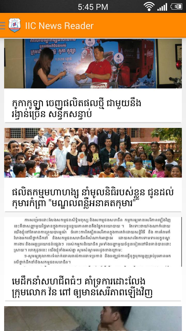 IIC News Reader lets you read news from many sources such as DAP, CEN, VOA, RFA, CNN... in one place. It support Khmer Unicode from Android 2.2+. This App developed by IIC’s student Chanrithy Thim.